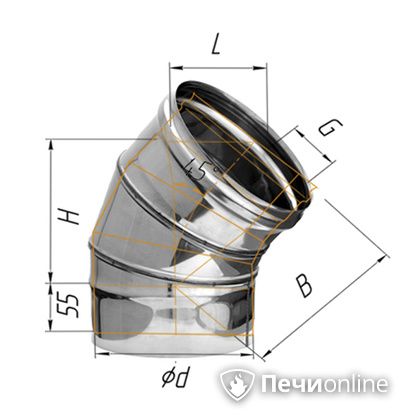 В интернет-магазине «Печи-Онлайн» вы можете купить товар «Дымоход Феррум Колено угол 135 нержавеющий 08 d-120 в Пскове» в Пскове по выгодной цене - 851₽