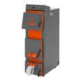 Топливом являются - дрова, уголь, древесные брикеты, торфяные брикеты, угольные брикеты, электричество (докупается тэн для поддержания температуры теплоносителя после прогорания основного топлива), пеллеты (докупается пеллетная горелка, превратится в полноценный пеллетный котел), газ (докупается газовая горелка). Подходит для отопления жилых и коммерческих объектов площадью до 400 м2. Время горения на одной закладке угля - до 12 часов. Такая длительность достигнута благодаря системе подачи вторичного воздуха в камеру сгорания и водотрубной колосниковой решетке, которая снимает тепло даже с тлеющих углей.