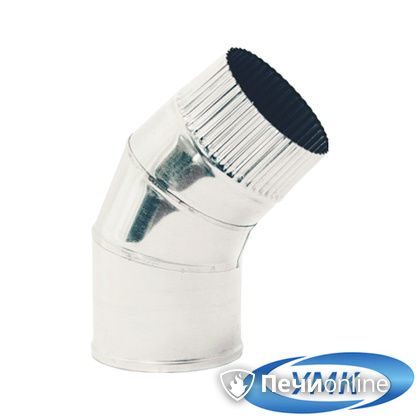 В интернет-магазине «Печи-Онлайн» вы можете купить товар «Дымоход УМК Отвод 135° D115 0.5мм нержавейка в Пскове» в Пскове по выгодной цене - 678₽
