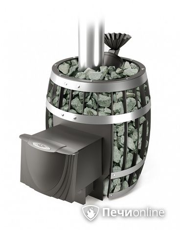 Емкая закрытая каменка оснащена подающей воронкой с обратным клапаном и двухступенчатой системой подготовки пара