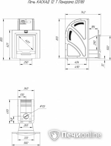 Описание дровяной печи-каменки Теплодар Каскад-12 Т Панорама (2018)