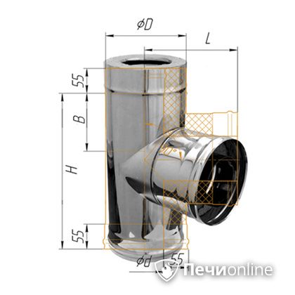 В интернет-магазине «Печи-Онлайн» вы можете купить товар «Дымоход Феррум Тройник утепленный нержавеющий 0.5/нержавеющий 90гр. d-120/200 по воде в Пскове» в Пскове по выгодной цене - 4 331₽